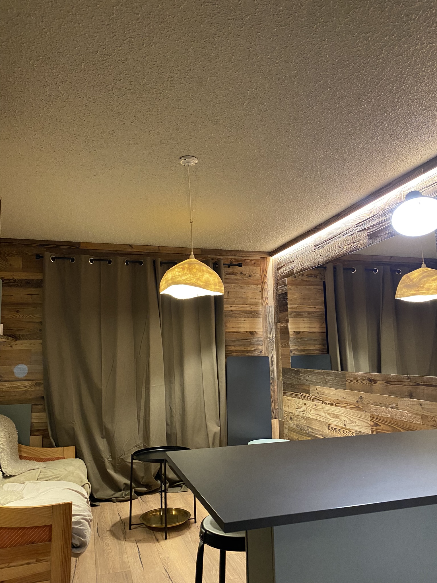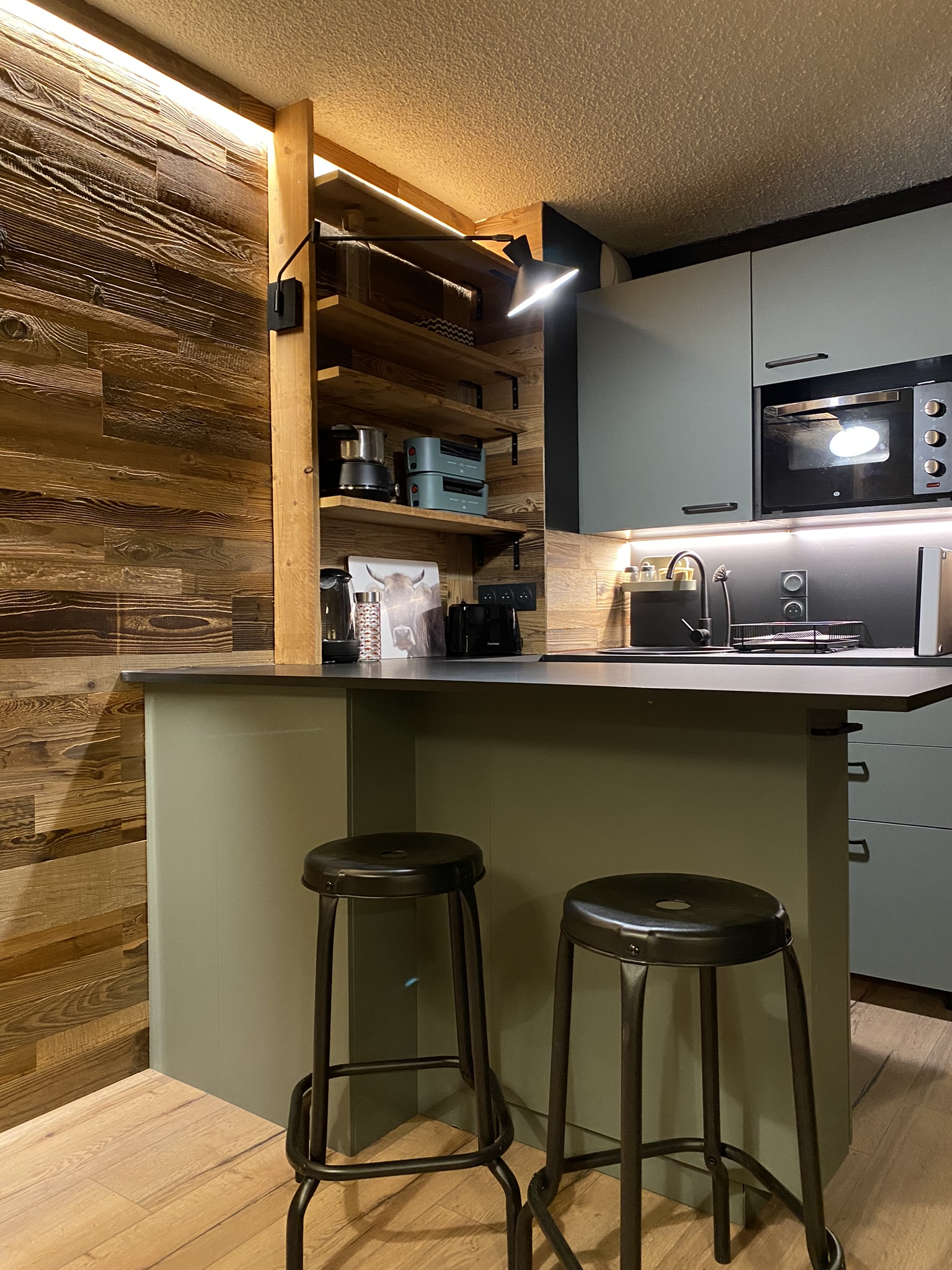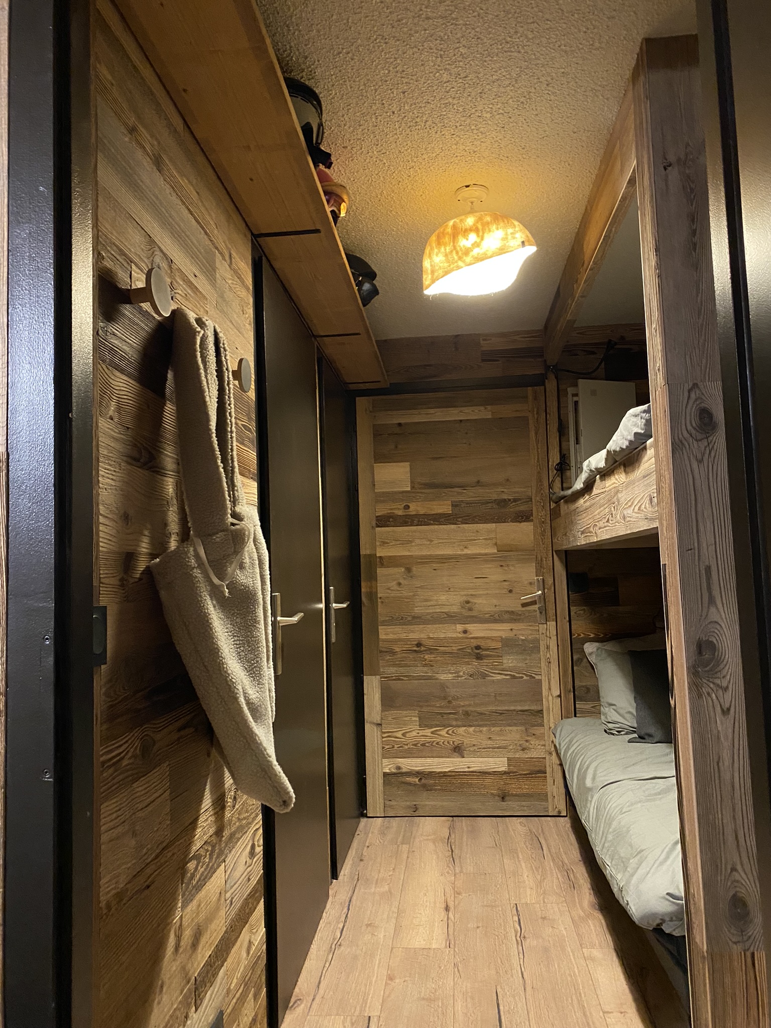 Au coeur de la station de Megève, ce studio de 15 m² a été entièrement repensé pour devenir un véritable cocon de montagne. L’enjeu était clair : donner une âme à ce petit espace tout en y intégrant praticité, douceur et chaleur, indispensables après une belle journée sur les pistes.