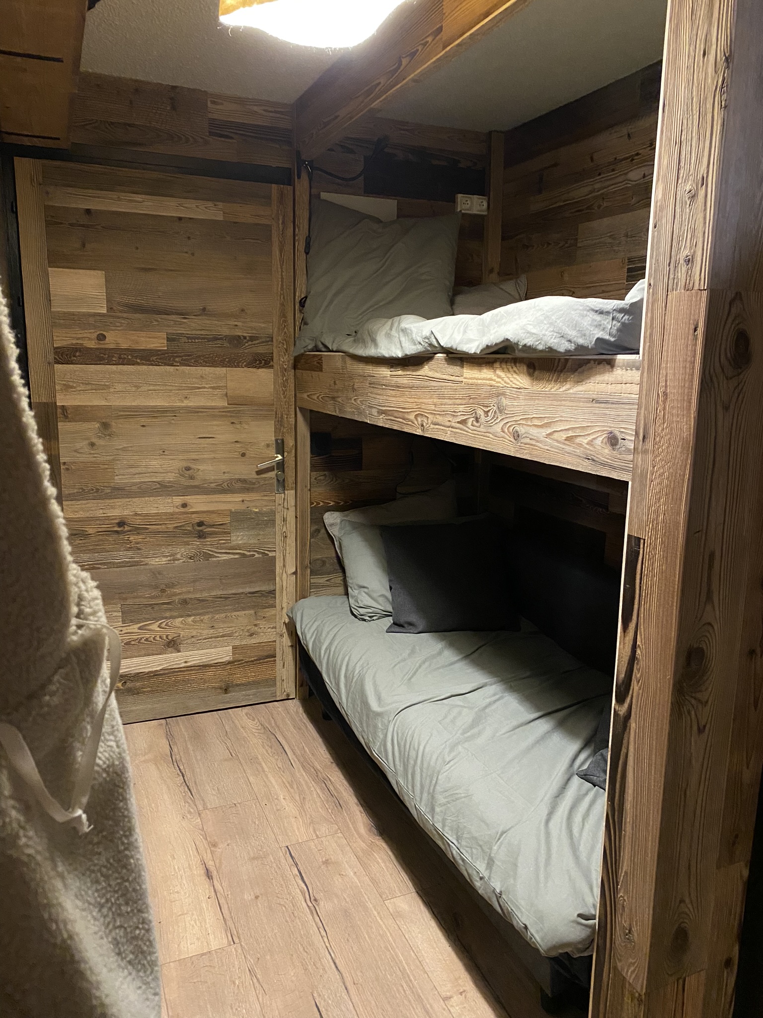 Chaque mètre carré a été optimisé grâce à un agencement sur mesure, pensé pour accueillir jusqu’à quatre personnes dans un confort maximal. La création d’un lit superposé sur mesure permet de structurer l’espace nuit sans alourdir le volume, tout en libérant des zones de circulation essentielles.